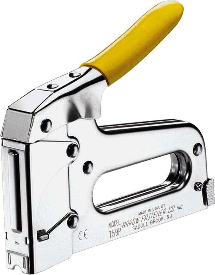 WIRING STAPLE GUN SKU: 357669 Arrow For stapling all types of wiring from 1/4" (6mm) to 5/16" (8mm) in diameter. Ideal for installing wiring for telephones, antennas, intercoms, and alarm systems. Can be used on plastic cable, hollow tubing, radiant heat cable, and virtually any application of wire. Grooved guide positions wire. Jam-resistant mechanism. Short span easy compression handle. All steel construction. Chrome finish. For low voltage wire up to 5/16" diameter. Holds 2 strips of 15 insulated staples Model No. 591188 (SKU 357677). 300 staples per pack. Item Attributes Type: Heavy-Duty Staple Size: 1/4 In. to 5/16 In. Brad Size: Prop 65 Warning This product can expose you to chemicals including Di(2-ethylhexyl)phthalate which is known to the State of California to cause cancer and birth defects or other reproductive harms. For more information go to www.P65Warnings .ca.gov.