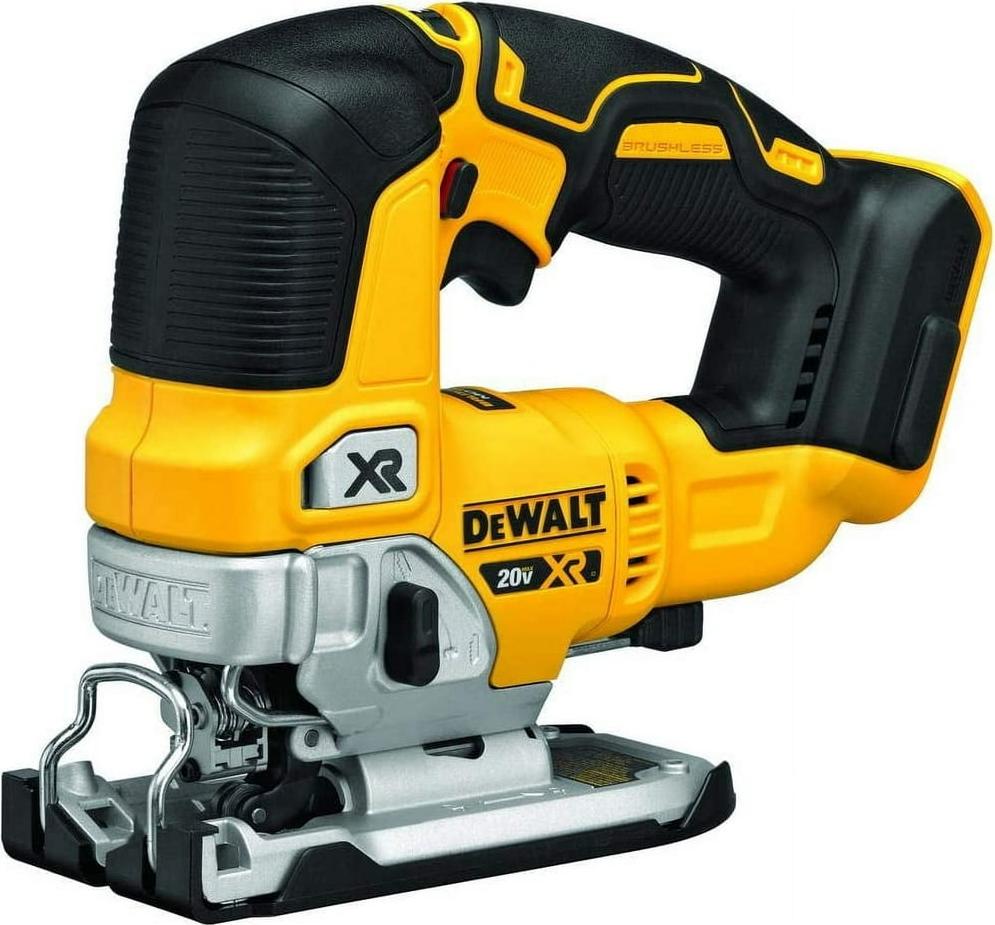 Our 20V MAX* XR® Cordless Jig Saw features an efficient motor for powerful performance and extreme runtime. Precisely control blade speed up to 3,200 spm with the variable speed trigger and dial, for professional results no matter what you're cutting. 4-position orbital action lets you adjust for optimal cutting of a variety of materials. A bright LED light illuminates dim work surfaces and makes it easy to follow cut lines. The updated all-metal, lever-action keyless blade clamp is designed for quick and easy blade changes of t-shank jig saw blades. Also keyless, the shoe bevel is easy to adjust with detents at 0°, 15°, 30°, and a positive stop at 45°. A removable shoe cover helps protect materials from scratches, and an integrated dust blower helps remove dust and debris from your line of sight as you cut. Battery and charger sold separately.
