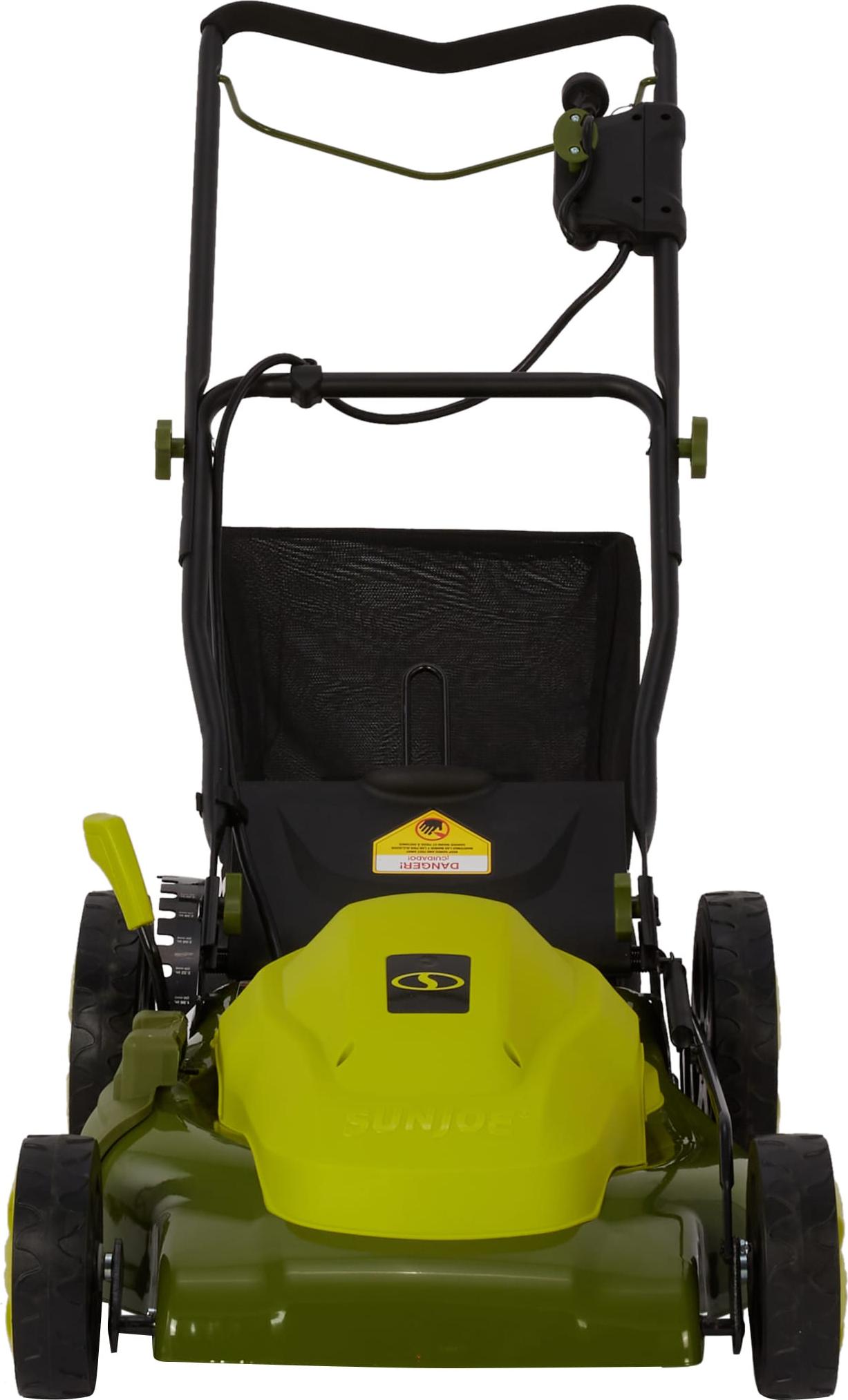Questions? Text 54267 to chat directly with a Sun Joe product expert Maintenance free - No gas, oil or tune-ups Best use: small to mid-sized lawns Grass collection bag capacity: 14.5 gal Detachable grass catcher for easy disposal Powerful 12-amp motor cuts a 20-inch wide path Tailor cutting height with 7-position manual height adjustment Full 2-year warranty