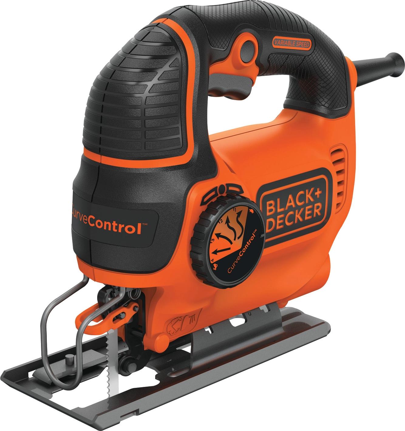The BLACK+DECKER BDEJS600C 5.0 amp variable speed orbital jig saw features Curve Control technology, allowing users to adjust the saw's orbit in 1 of 4 customized settings to help complete the specific project at hand. The 5 amp variable-speed motor generates up to 3,000 SPM of cutting ability. This saw can make bevel cuts of up to 45 degrees in both directions and features an adjustable shoe for a stable cutting platform. Furthermore, the keyless blade clamp allows for tool-free blade changes, accepting U and T shank blades. This saw''s new and improved Wire Guard provides clear line of sight for precise cuts. New technology combined with an efficient, ergonomic design make this jig saw a great addition to a DIYer''s arsenal.